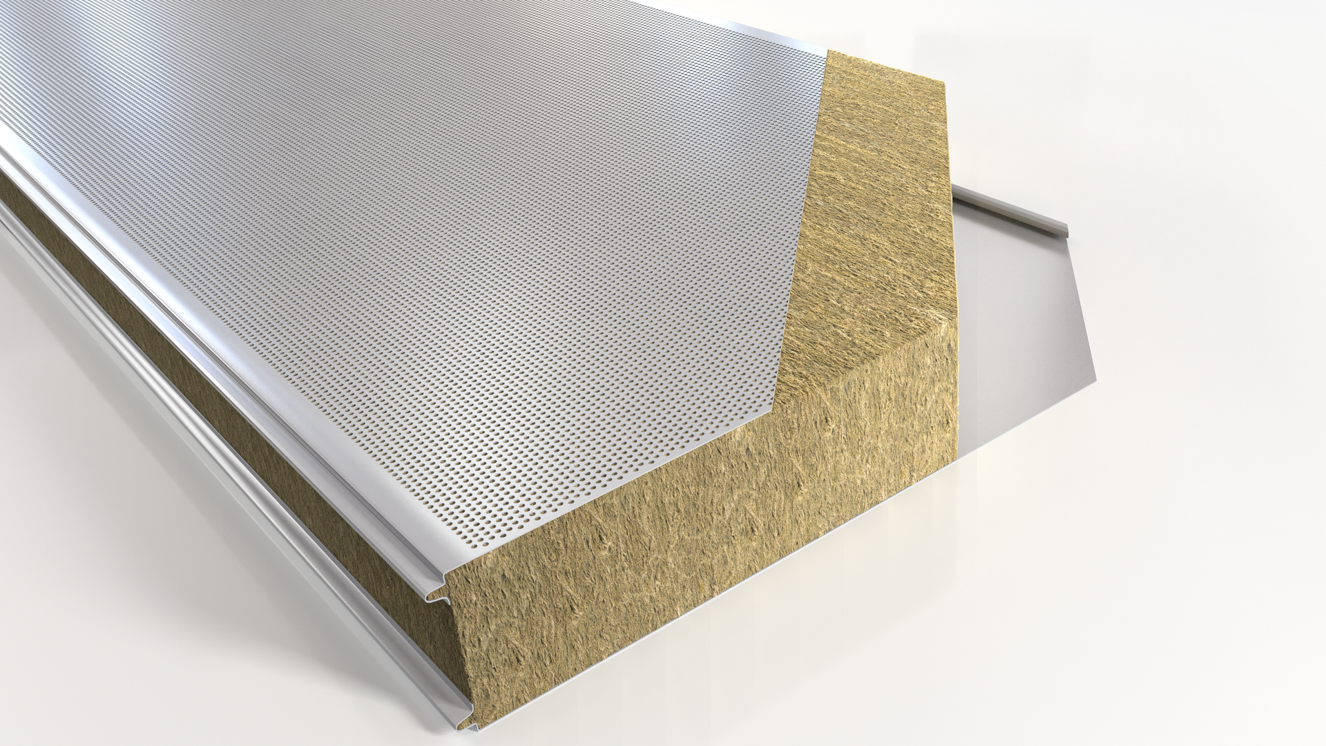 Stone wool insulated sandwich panel perforated for acoustic performance